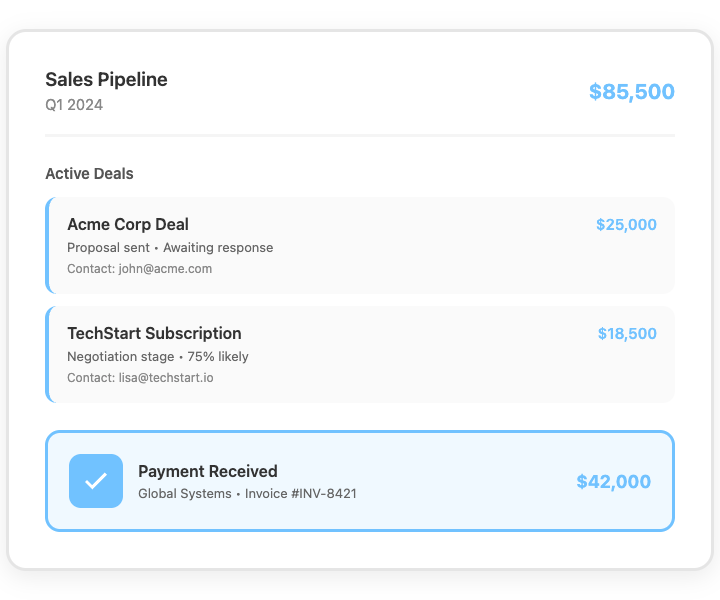 From leads to revenue, all in one flow.