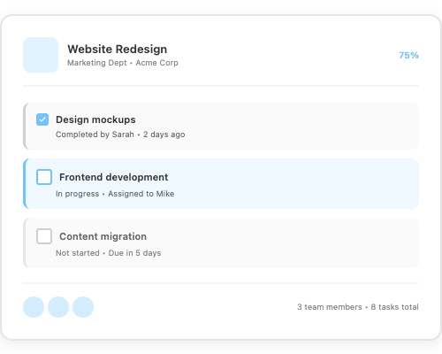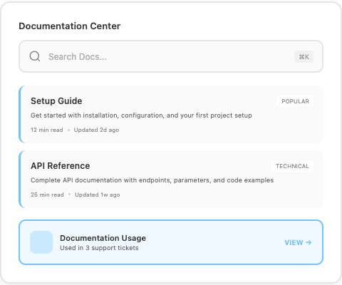 Build living documentation that feeds your entire platform. Support agents find instant answers, project teams share process guides, and clients access your knowledge base 24/7.
